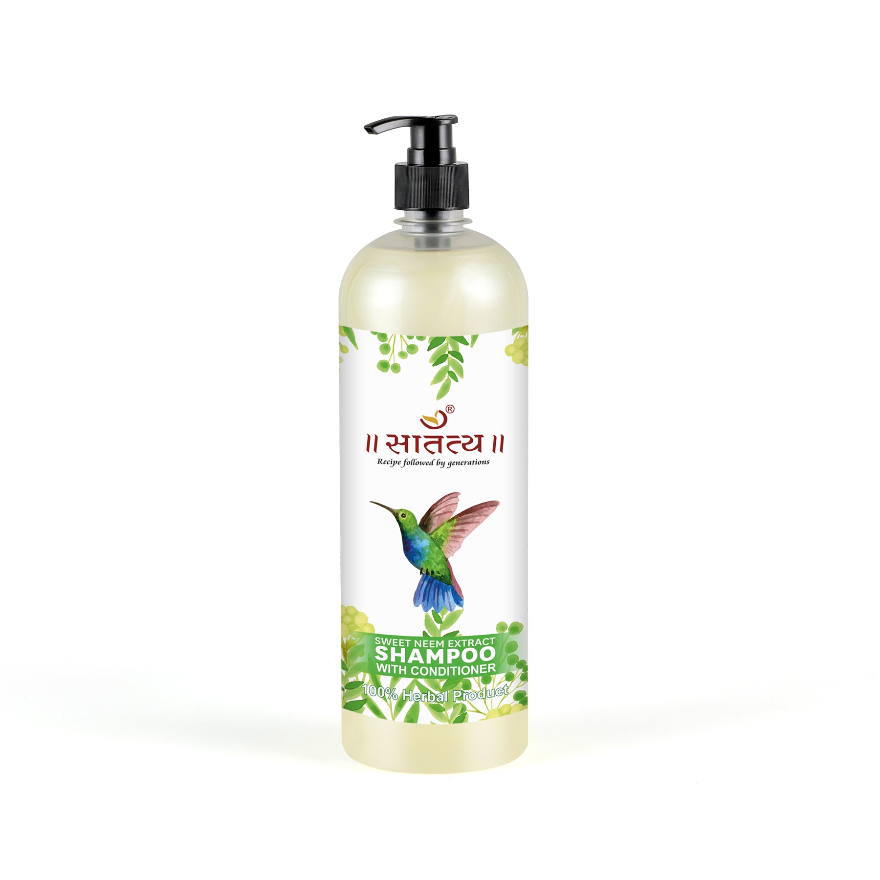 ndulge in the sweetness of nature with our Sweet Neem Extract Shampoo! Enriched with the goodness of Sweet Neem, also known as Curry Leaves, which are rich in essential nutrients like proteins, beta-carotene, and amino acids that nourish hair follicles, promoting stronger and healthier hair growth. We care for you and your hair, so our shampoo is 100% Natural and free from parabens as well as harsh chemicals. Satatya Sweet Neem Shampoo helps you fight dandruff and nourishes your scalp. It’s like a soothing hug for your scalp, saying goodbye to any discomfort. Treat yourself to the sweetness of nature with every wash, and let your hair shine like never before!